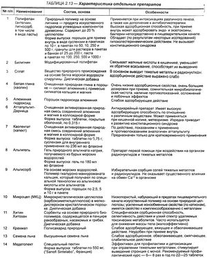 Кроме этого, существуют лекарственные средства, также обладающие адсорбционными свойствами, но только в отношении определенных токсинов, и применяющиеся, согласно фармакологическим справочникам (Машковский, 2006), в первую очередь как антацидные и антидиарейные препараты (смекта, маалокс, альмагель и т. п.), т. е. при достаточно узком спектре патологических состояний. С нашей точки зрения, несмотря на имеющиеся, хотя и слабо выраженные, сорбционные свойства, препараты такого рода не следует относить к классу именно энтеросорбентов, однако для полноты представления о вещества*, обладающих сорбционными свойствами, названные лекарственные средства будут перечислены и коротко описаны в этом разделе.