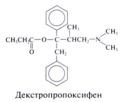 | + | [[Image:Gud_468.jpg|300px|thumb|right|Структурная формула декстропропоскифена ]] | ||