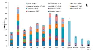 Содержание маслиновой кислоты в разных видах яблок.