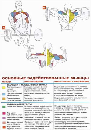 Тяга штанги к подбородку - базовое упражнения для построения дельтовидных мышц (главным образом средней головки), в работу также включаются трапециевидные мышцы.